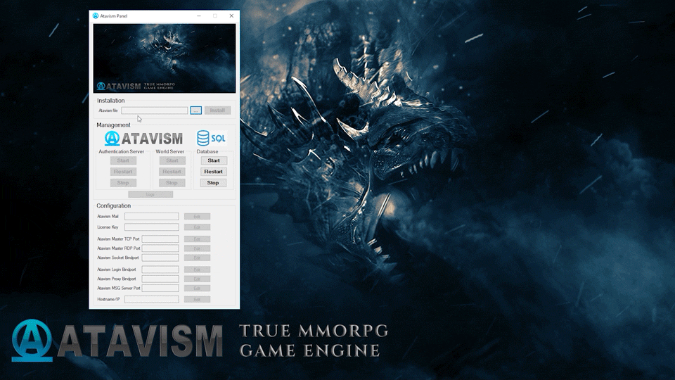 - Windows Manager lets you to process installation and manage your database and Atavisms processes using easy to use and friendly interface, designed and prepared mostly for hobbyists without Linux knowledge, for which it’s hard to handle our premade Virtual Machine or for fast startup to use Atavism.