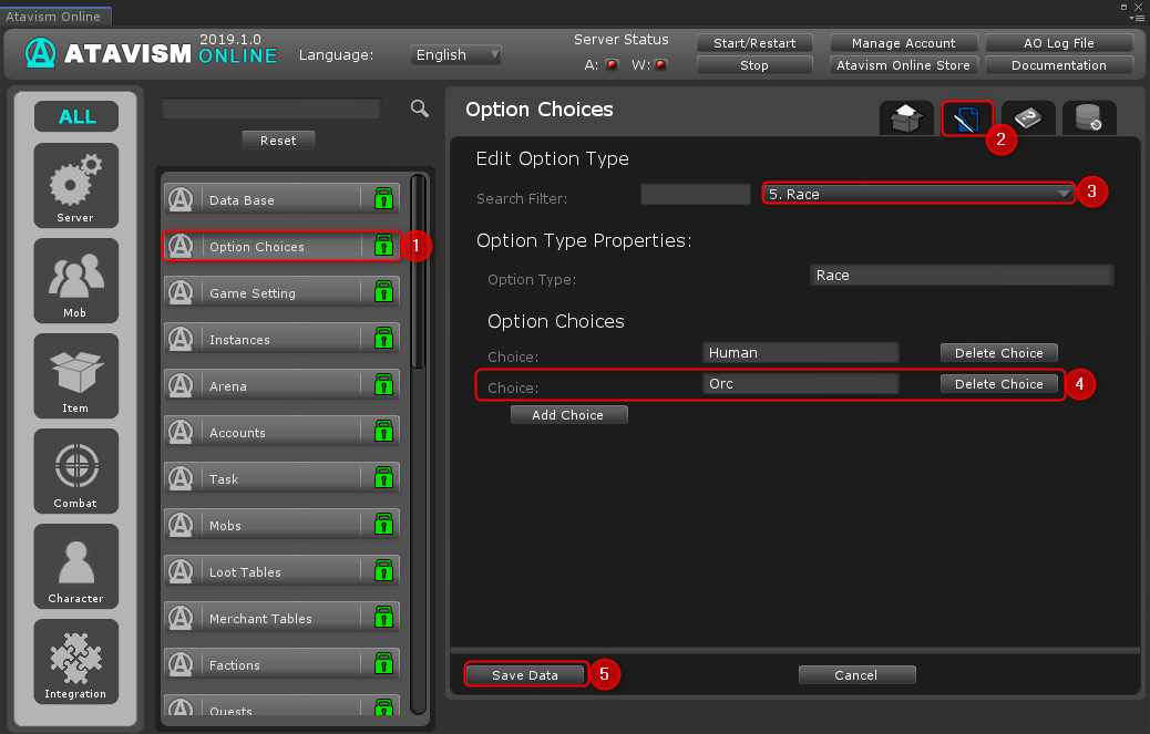 If you are using UMA, and you want to add Orc Race, just open Atavism Editor -> Option Choices -> Switch to Edit Tat -> Select Race from the dropdown list -> Click Add Choice button -> Enter “Orc” and click save at the bottom section of the window.