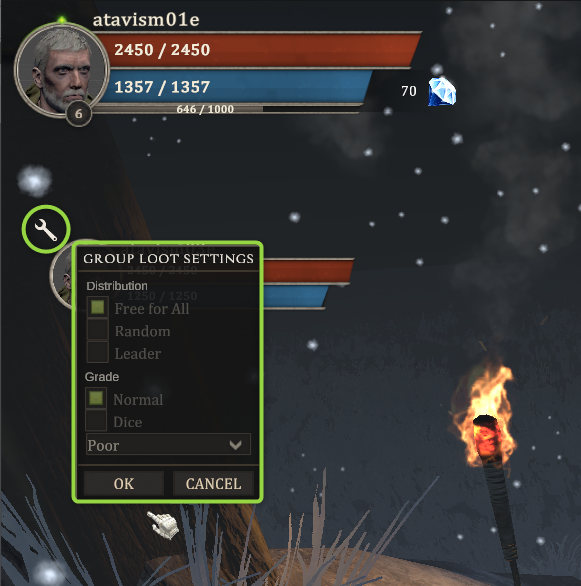 1. Group loot distribution, where group leader can define loot distribution options like who can loot (Free For All, Round Robin, Leader), and define grade (quality) of items and if the quality will be equal or higher than it can use roll the dice with value 1-1000, so group members can use their chances to get the item anyway.
