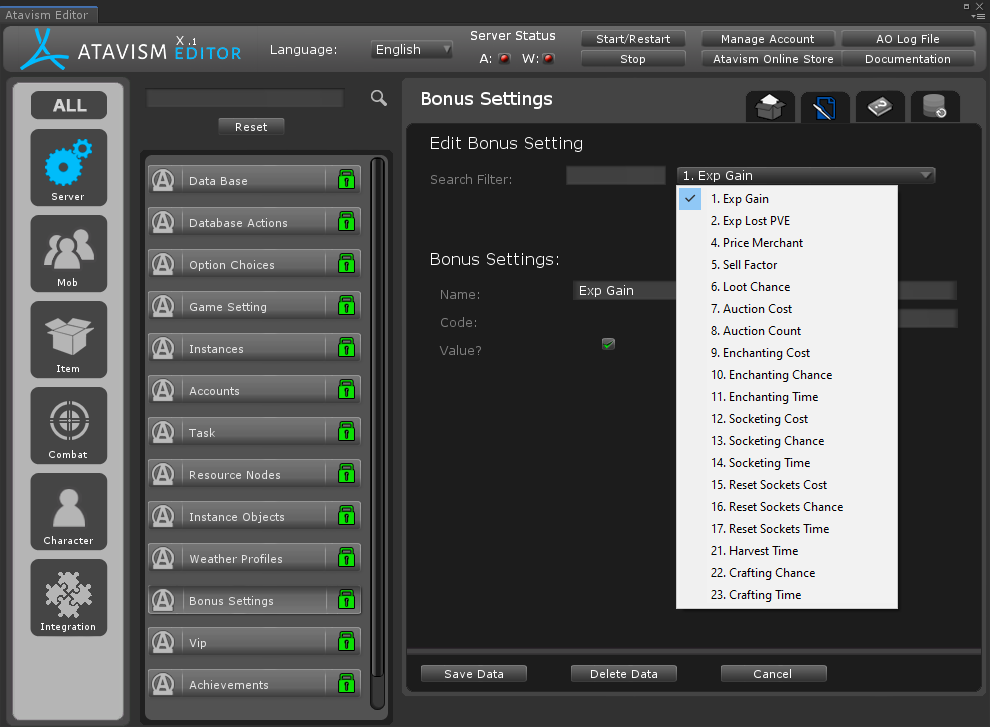 Important Note: Except the name, other parameters shouldn’t be changed due to server side code implementation. In the future releases we will expand this list of bonuses.