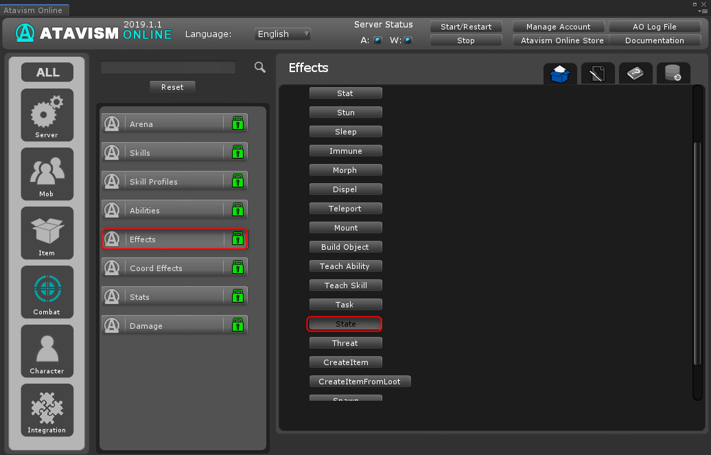 In most cases, if you are using the water region you will want to have a breath stat which will go down while the player is within the water region. Open Atavism Editor and define new stat in the stat plugin.