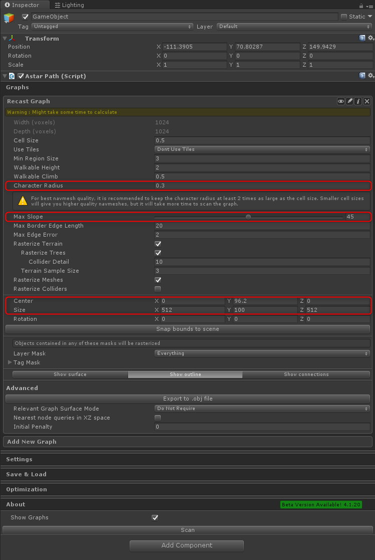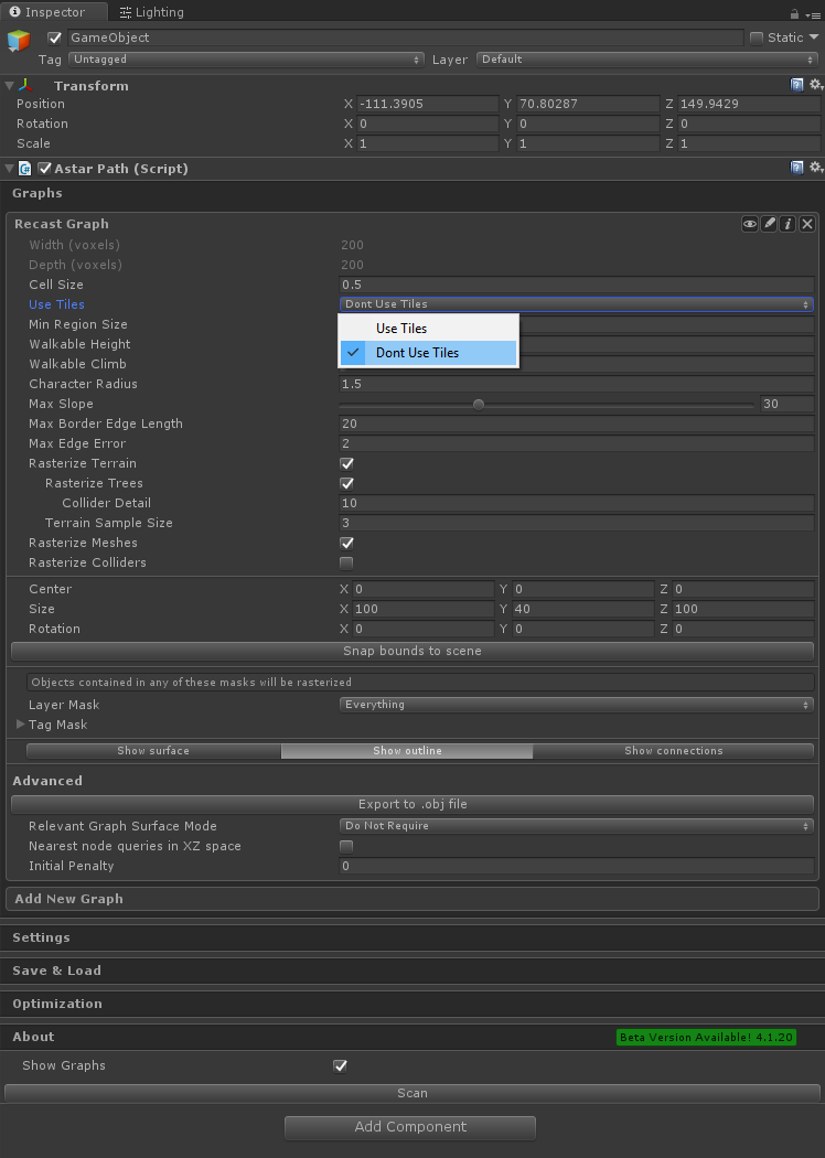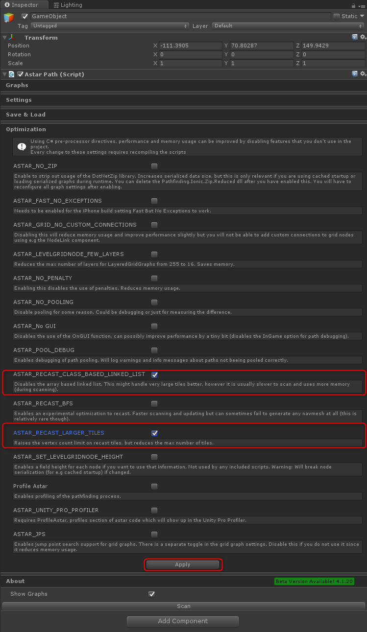 - Tick the ASTAR_RECAST_LARGER_TILES option and click the Apply button