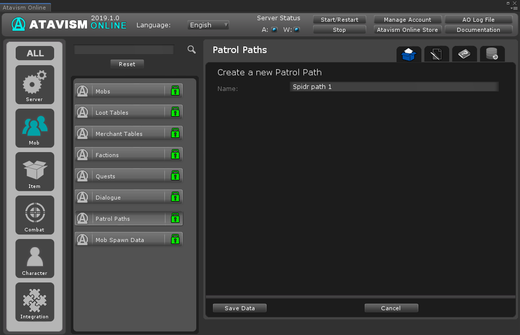 Patrol path can be created in runtime, and assigned to Mob/NPC using the admin panel. You can remove patrol paths in the Atavism Editor.