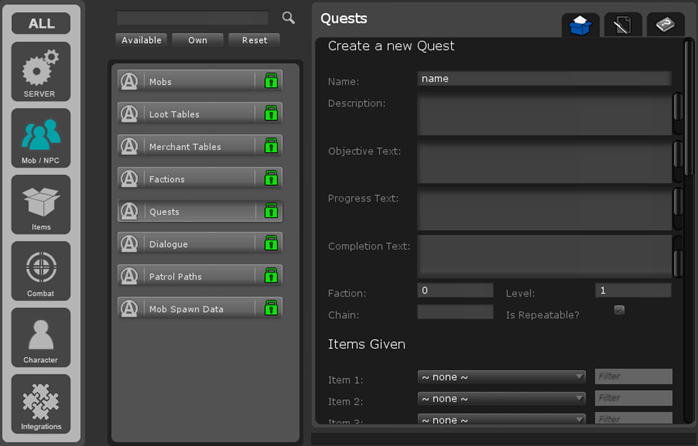 您可以使用此插件创建任务或任务链。一旦你创建了一个任务,你可以在游戏中产生它时将它分配给一个Mob / NPC。