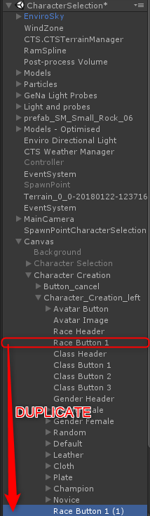 重复Assets / AtavismObjects / CharacterCreateObjects / HumanRace并将重复的对象重命名为YourRaceRace