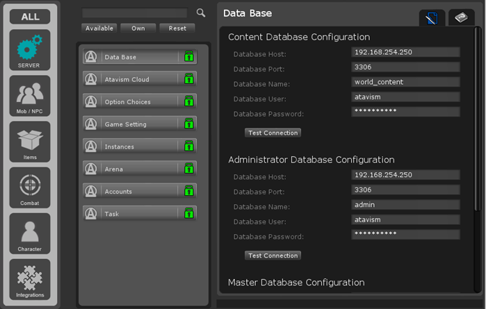 在您可以访问数据并将数据保存到数据库之前,需要设置连接设置。要设置数据库连接设置,请单击“ALL”或“SERVER”选项卡中“插件列表”顶部的“数据库”按钮。
